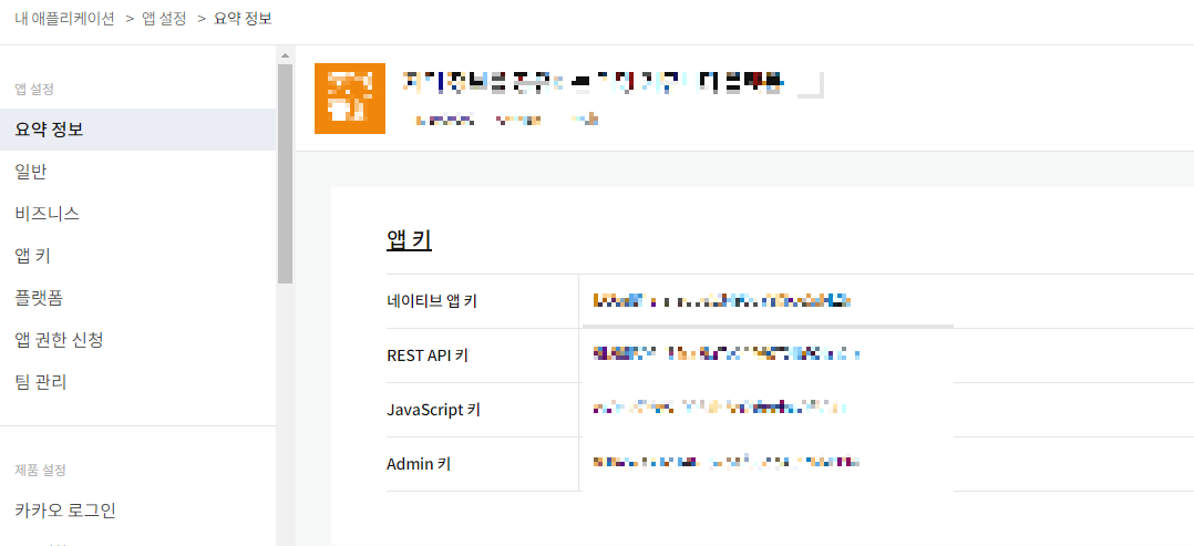 앱 설정 > 요약 정보에 JavaScript 키를 비롯하여