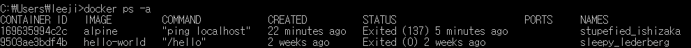 docker ps -a : 죽은 것까지 모두 확인