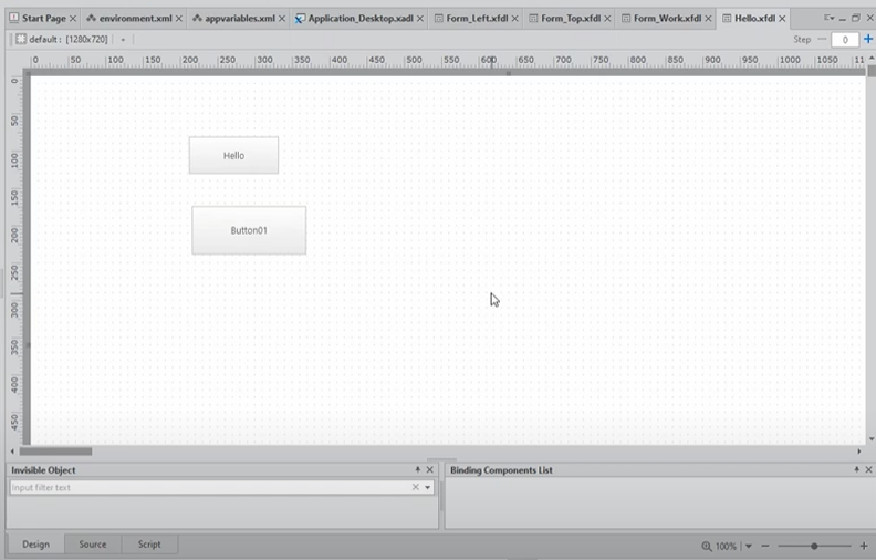 .xfdl은 Design, Source, Script 로 구성되어 있다.