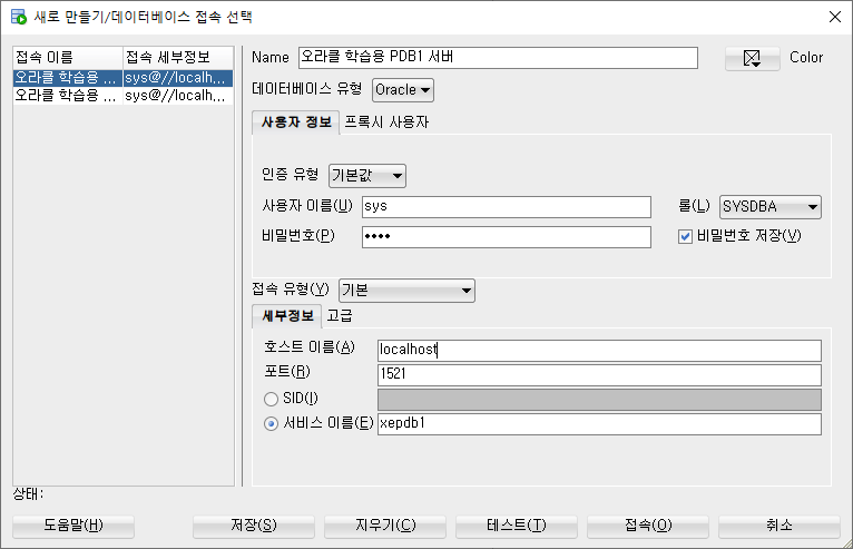| oracle database 설치/ sql developer 설치/ network adapter could not establish the connection 에러 처리 (0) | 2021.10.16 |