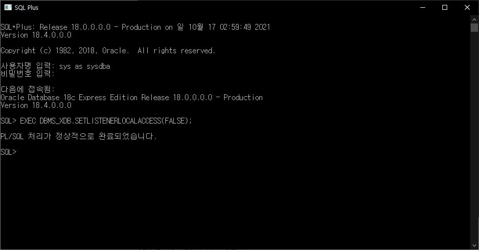 EXEC DBMS_XDB.SETLISTENERLOCALACCESS(FALSE);