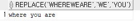 select replace('where we are', 'we', 'you') from dual;