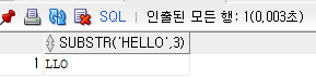 SELECT SUBSTR('HELLO',3) FROM DUAL;