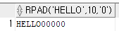 select RPAD('HELLO',10,'0') FROM DUAL;