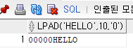 select LPAD('HELLO',5, '0') FROM DUAL;